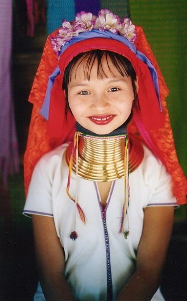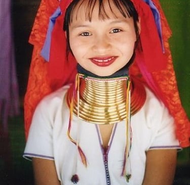 The Kayan people are an ethnic subgroup of the wider Karen peoples originally from eastern Myanmar (Burma). The community that live in Nai Soi in Mae Hong Son Province, northwestern Thailand, largely consists of refugees and descendants of refugees who fled conflict in Myanmar beginning in the late 1980s and 1990s. They are known for the brass neck coils worn by some women, a cultural tradition that begins in childhood and gradually increases in weight, creating the appearance of an elongated neck (the effect is actually caused by compression of the collarbone and ribcage rather than stretching of the neck itself).